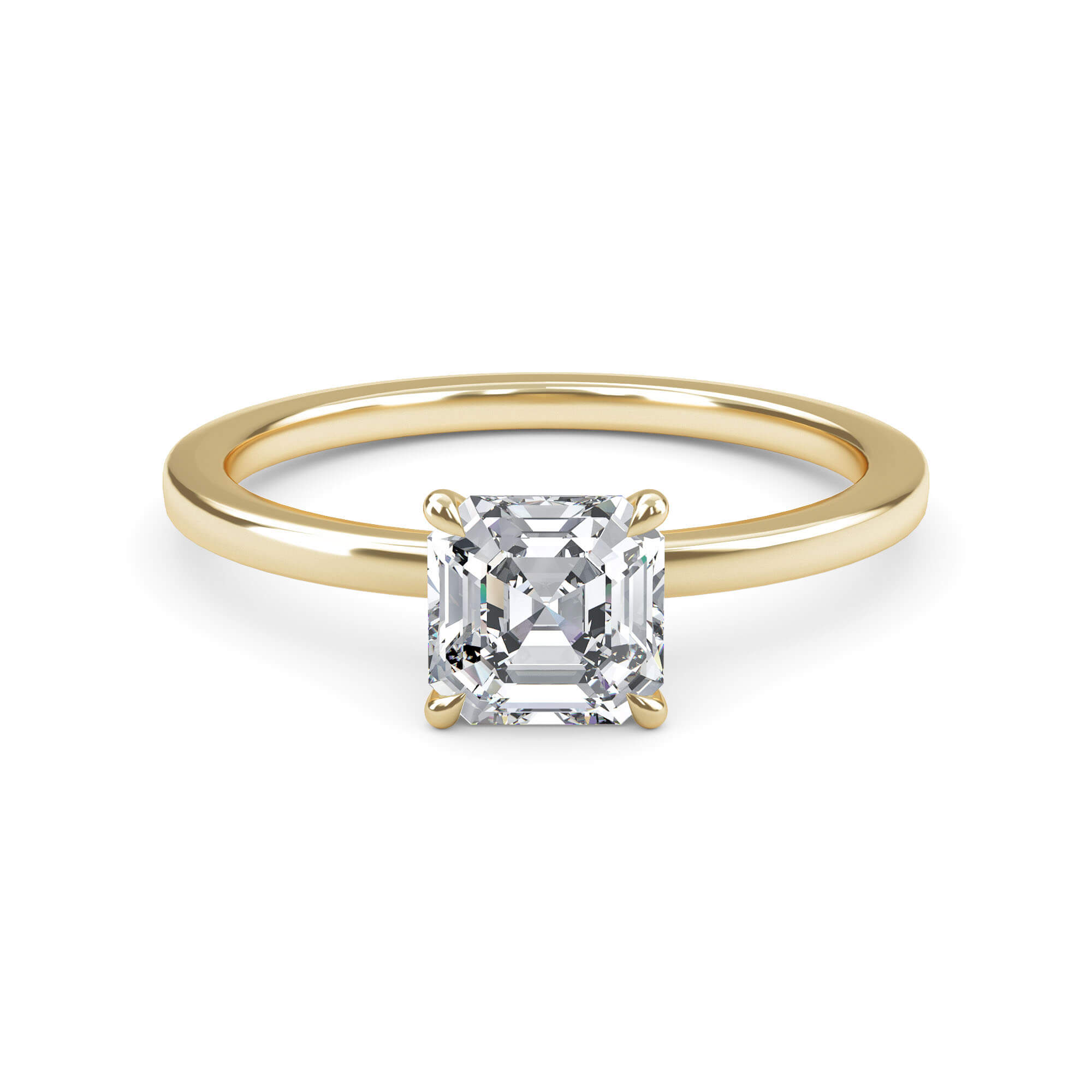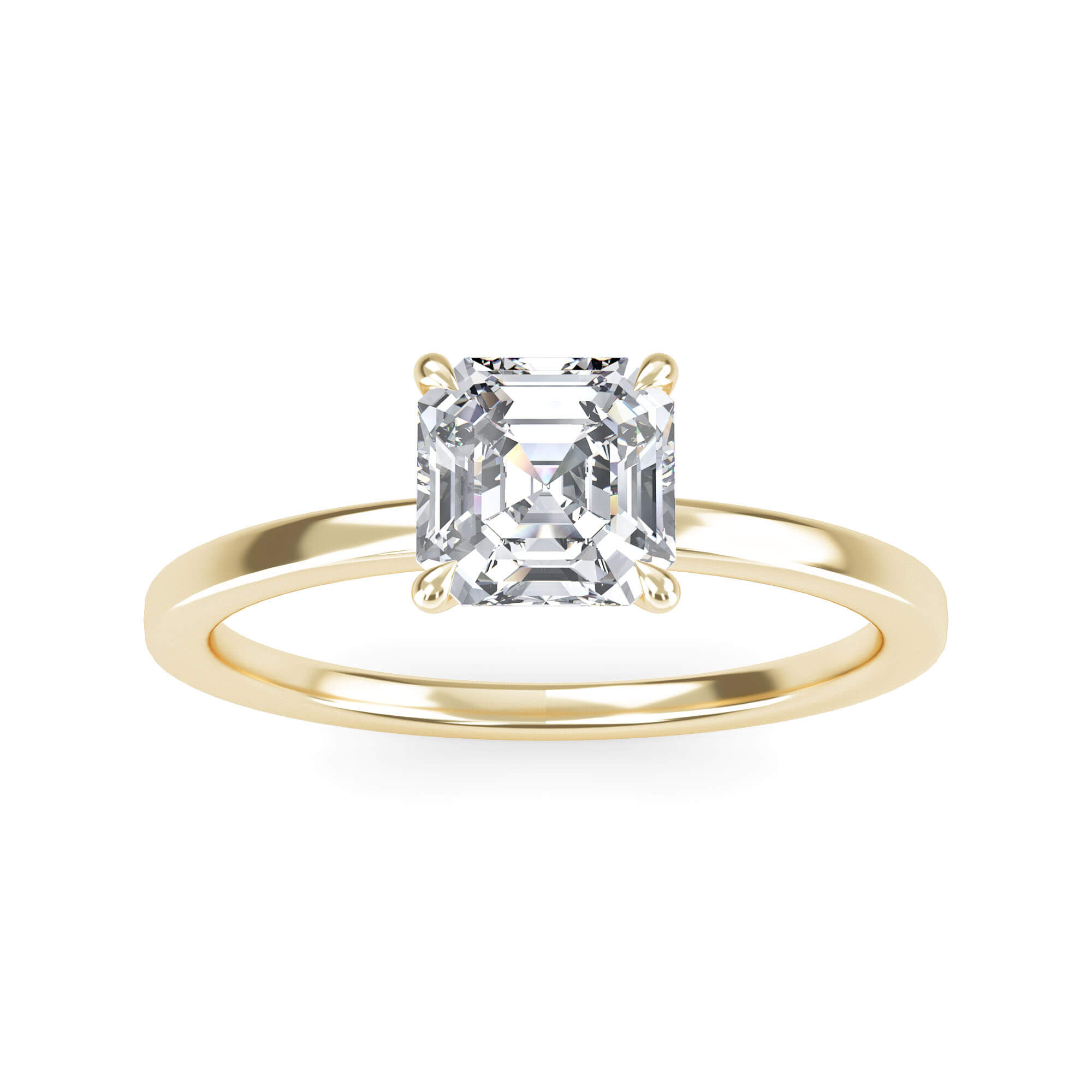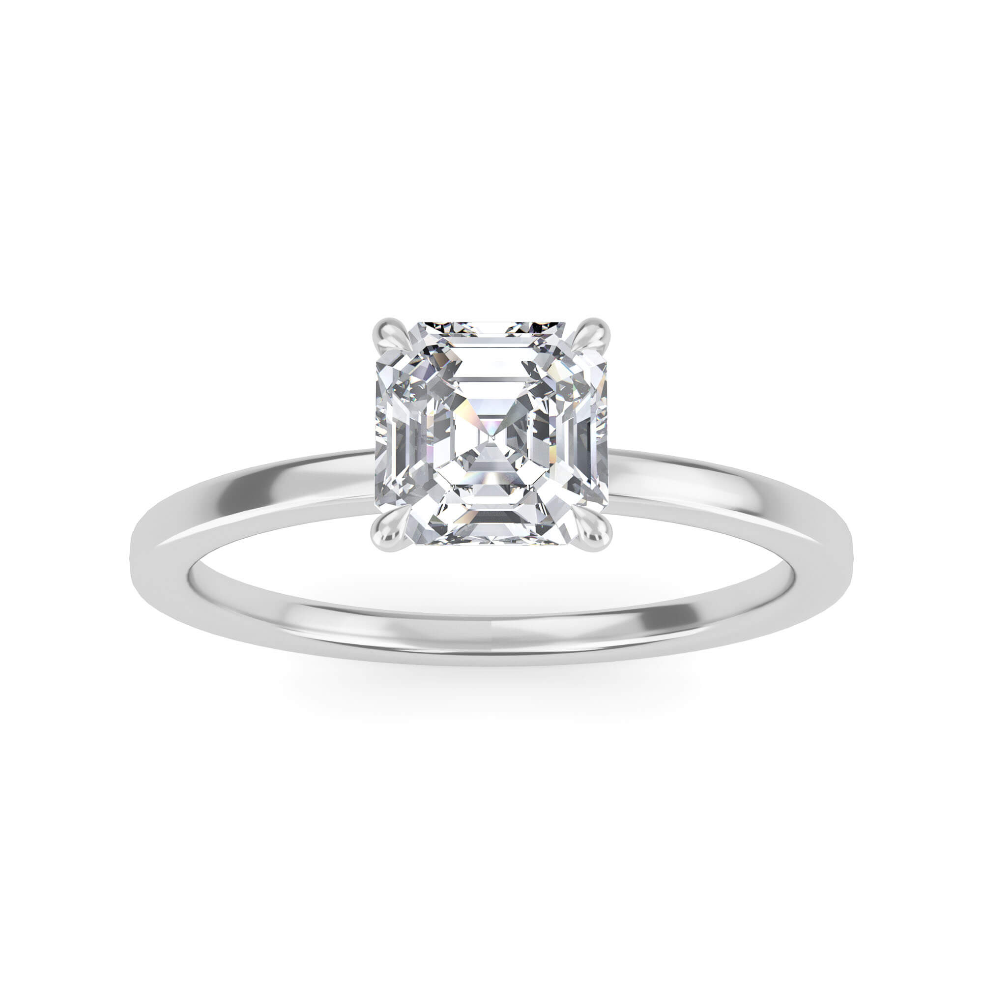 In comparison natural asscher cut four prong diamond ring have lower environmental & human impacts all while having the same physical and optical properties as earth-mined diamonds at a fraction of the price.