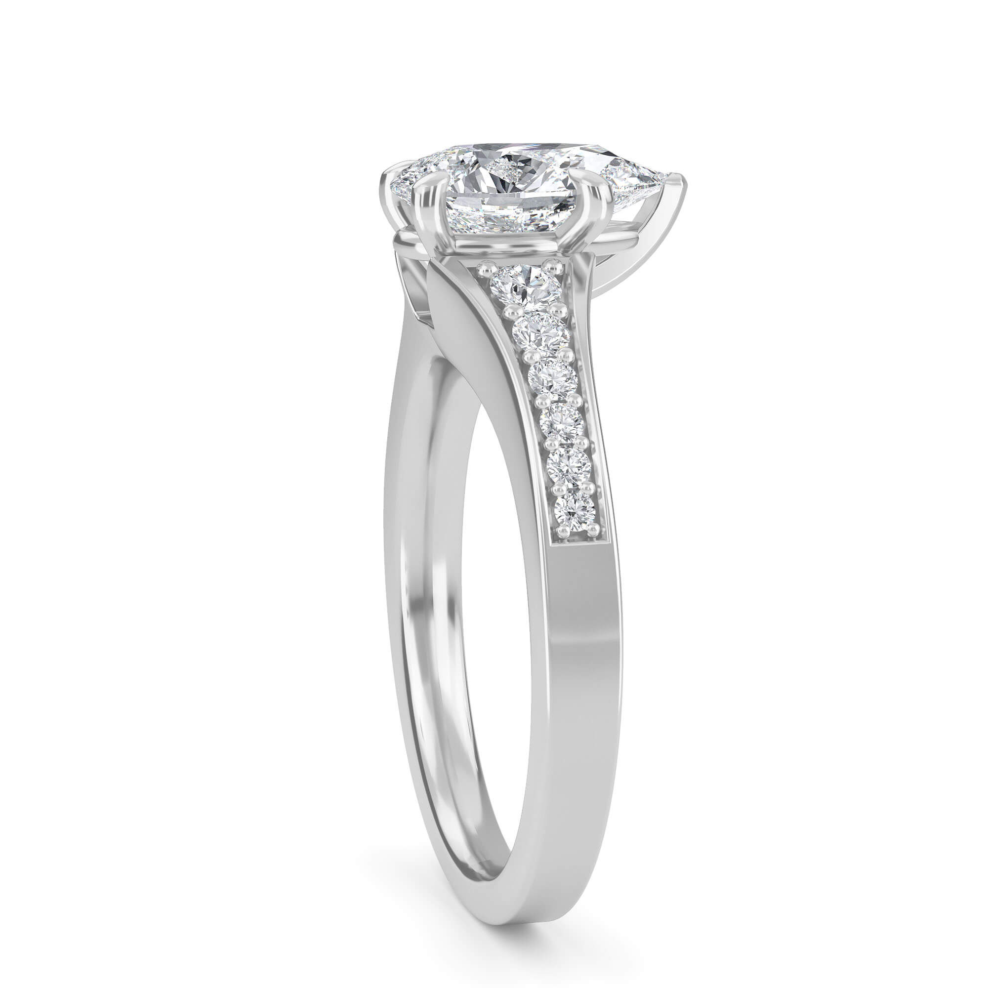 The final effect has a classic elegance, and the channels of diamonds draw the eye along the pear shape diamond solitaire antique ring toward the center stone.