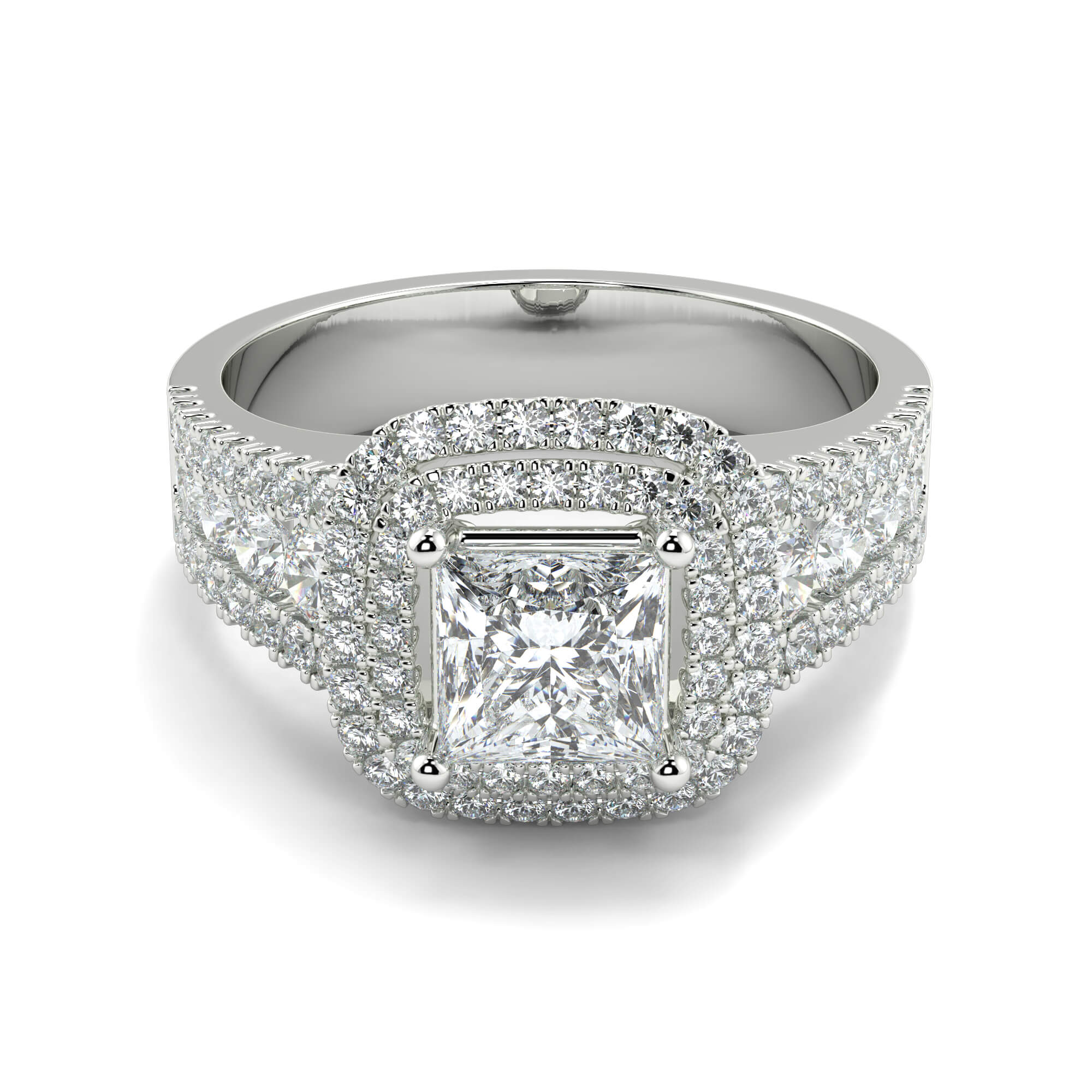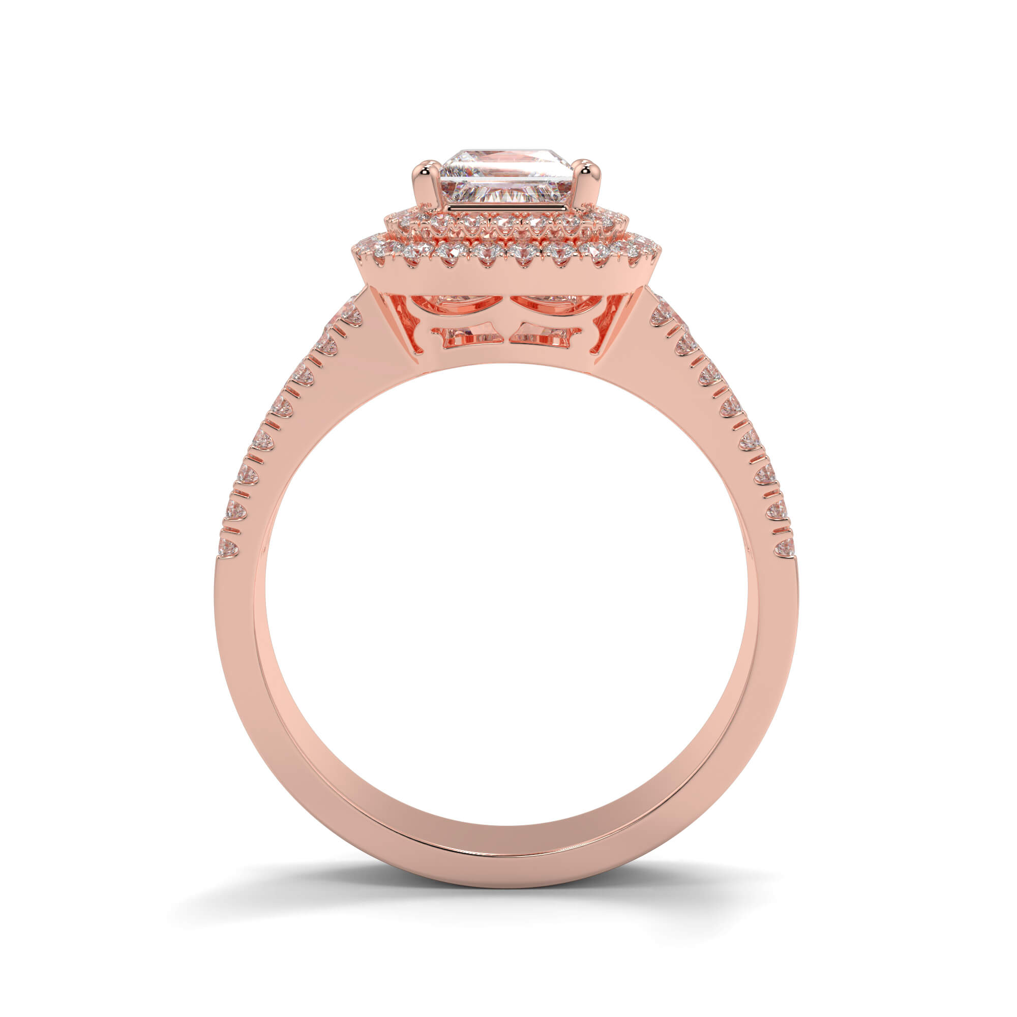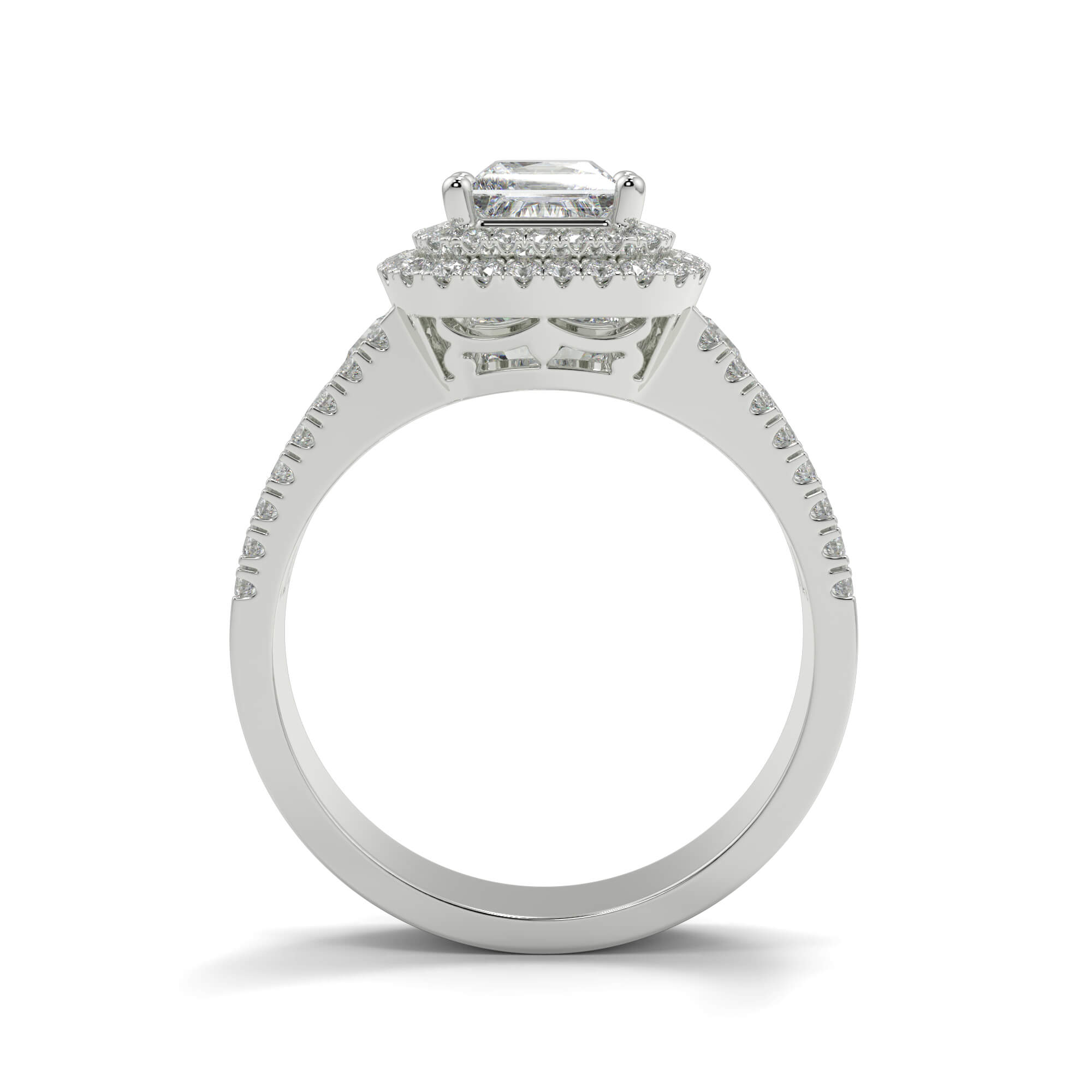 Instead, it has a regal, vintage princess double halo diamond ring look that will make any woman feel like a queen.