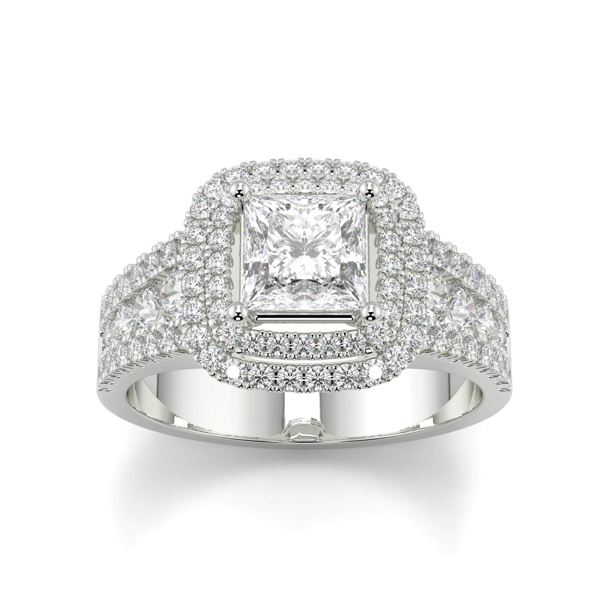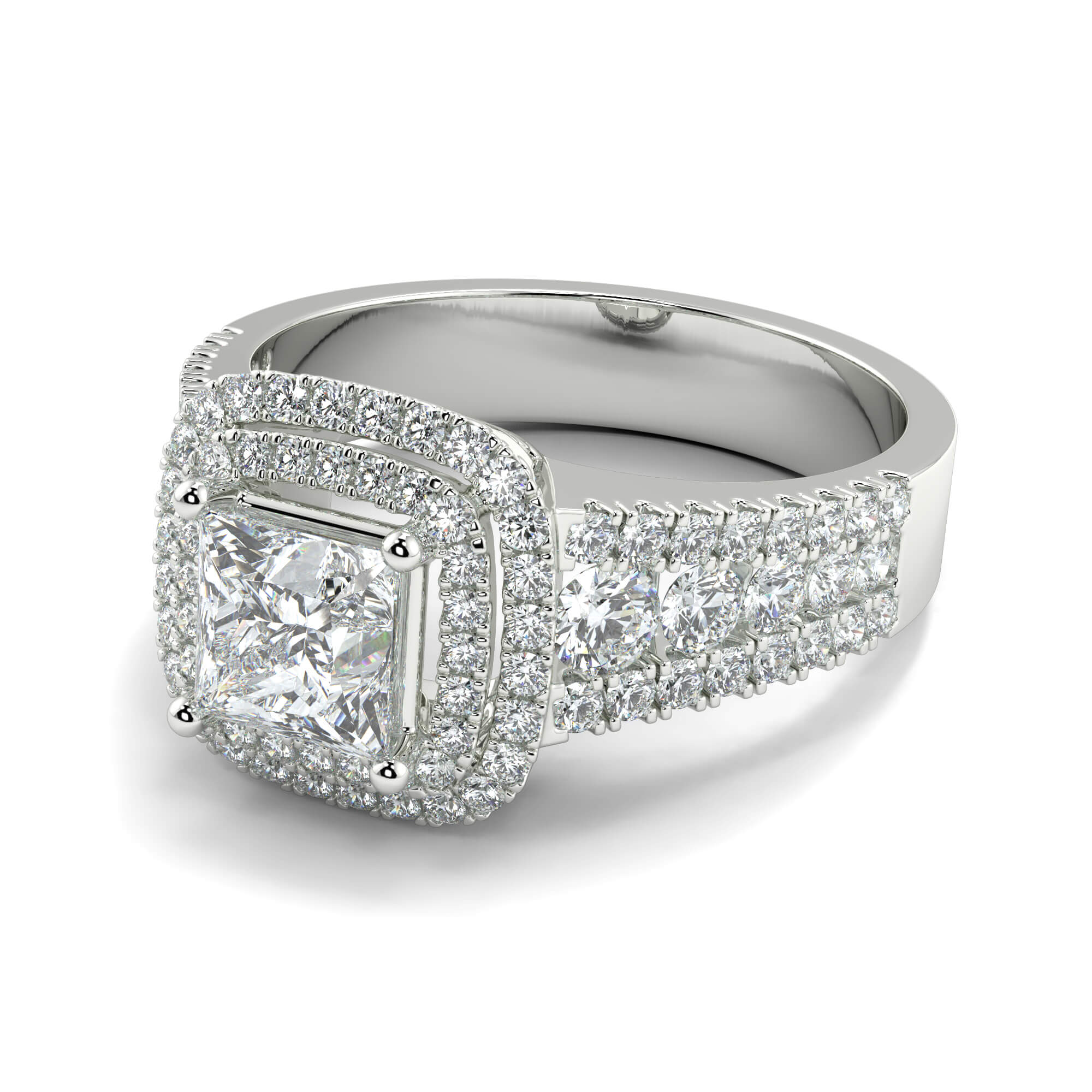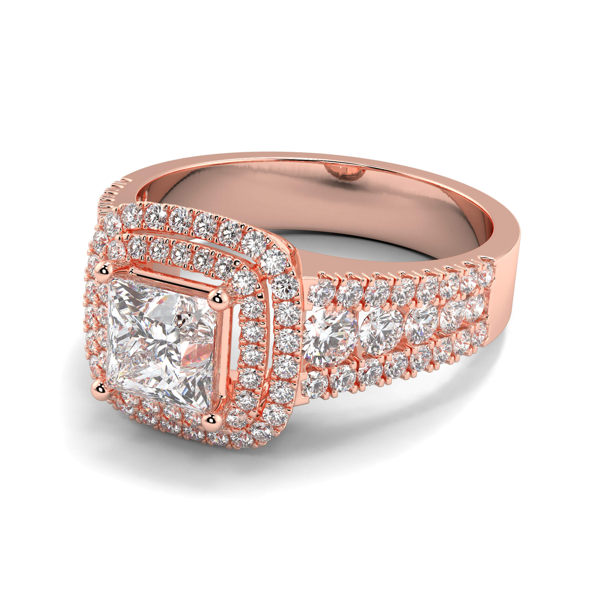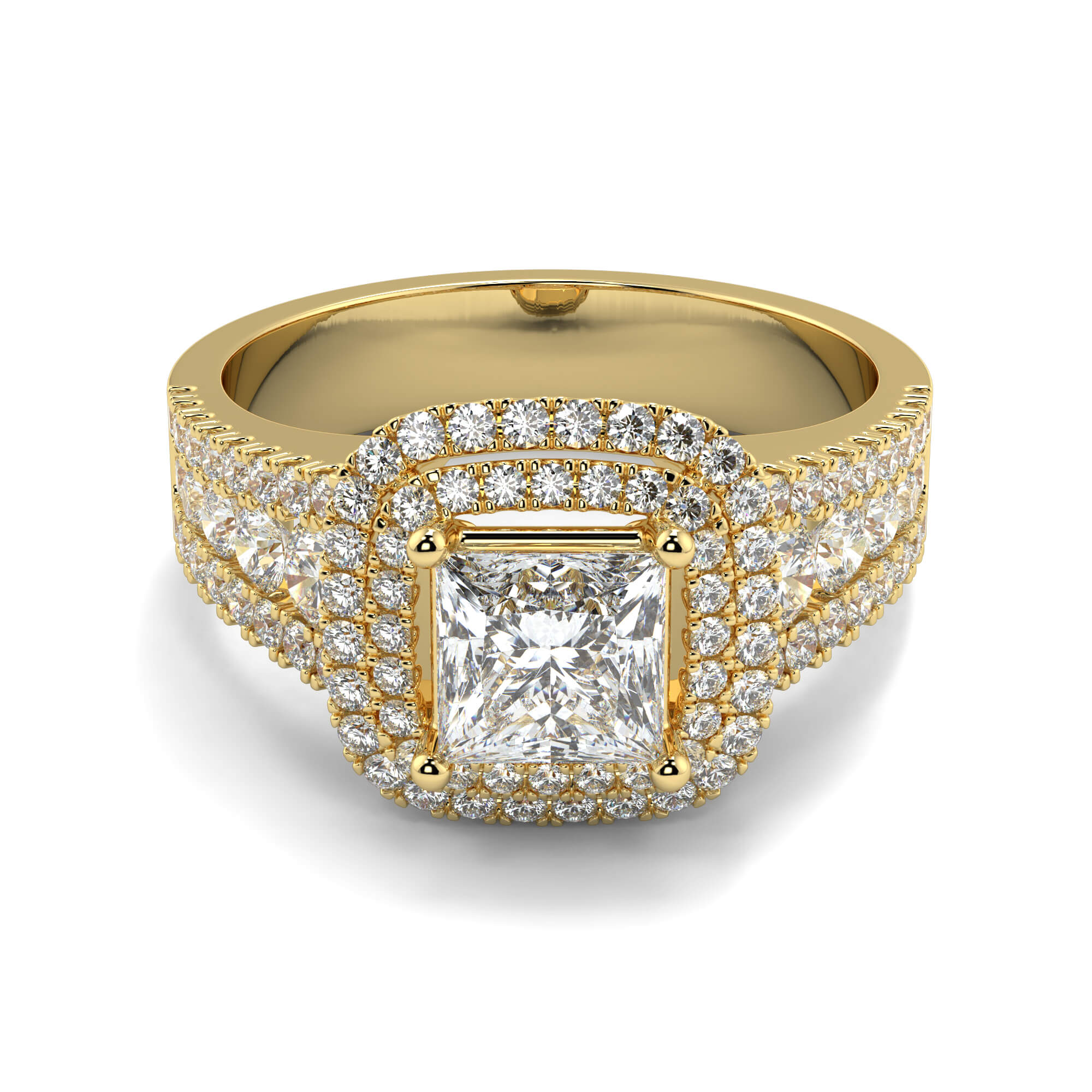 Instead, it has a regal, vintage princess double halo diamond ring look that will make any woman feel like a queen.