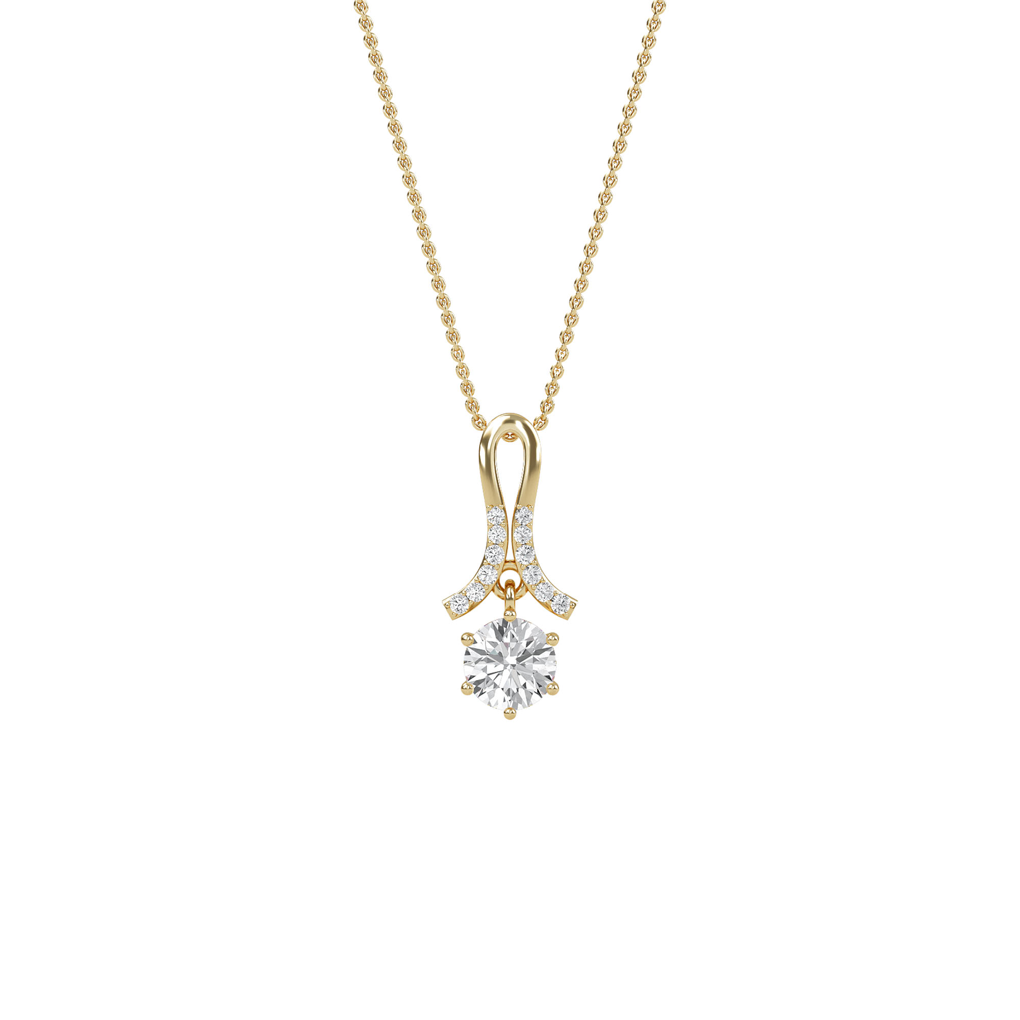 We are confident of the quality of our products, and we are sure you will be totally satisfied with this classic round diamond 6 prong set pendant.